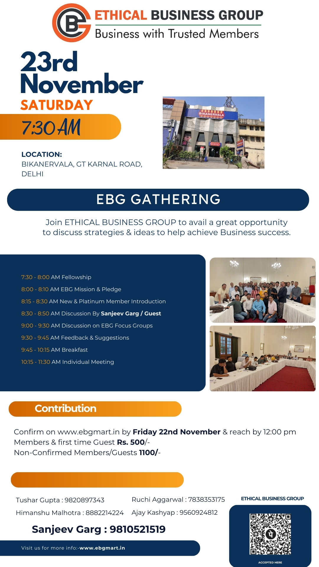 Weekly GatheringBy admin / November 20, 2024 23 November @ 07:30 7:30 am — 11:30 am (4h) BIKANERVALA Register for Meeting